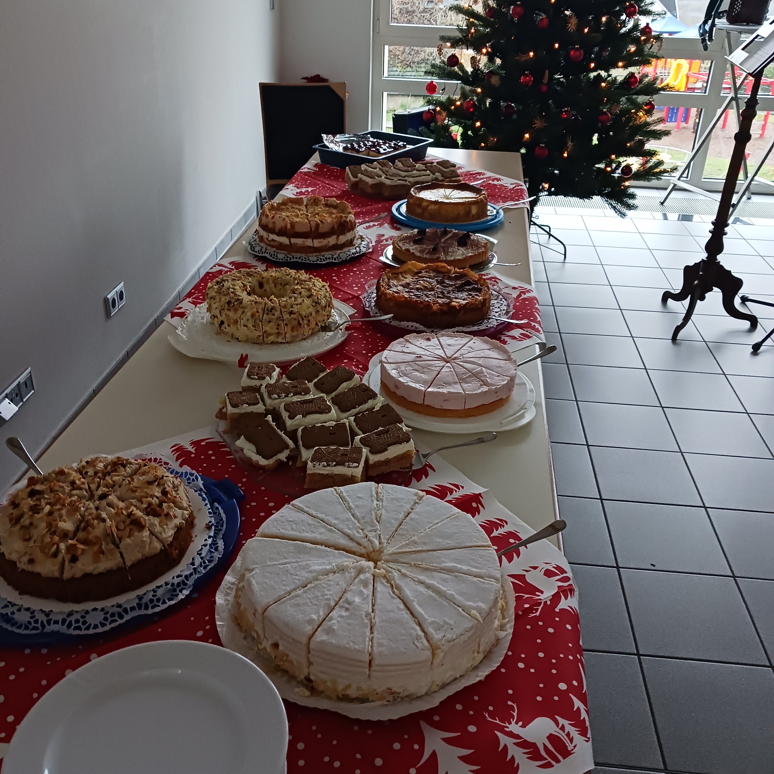 Im Gedenken an die Kranken und Verstorbenen wurde eine Kerze angezündet und nach dem Lied „Macht hoch die Tür, die Tor macht weit“ konnte das große Kuchenbüffet gestürmt werden.