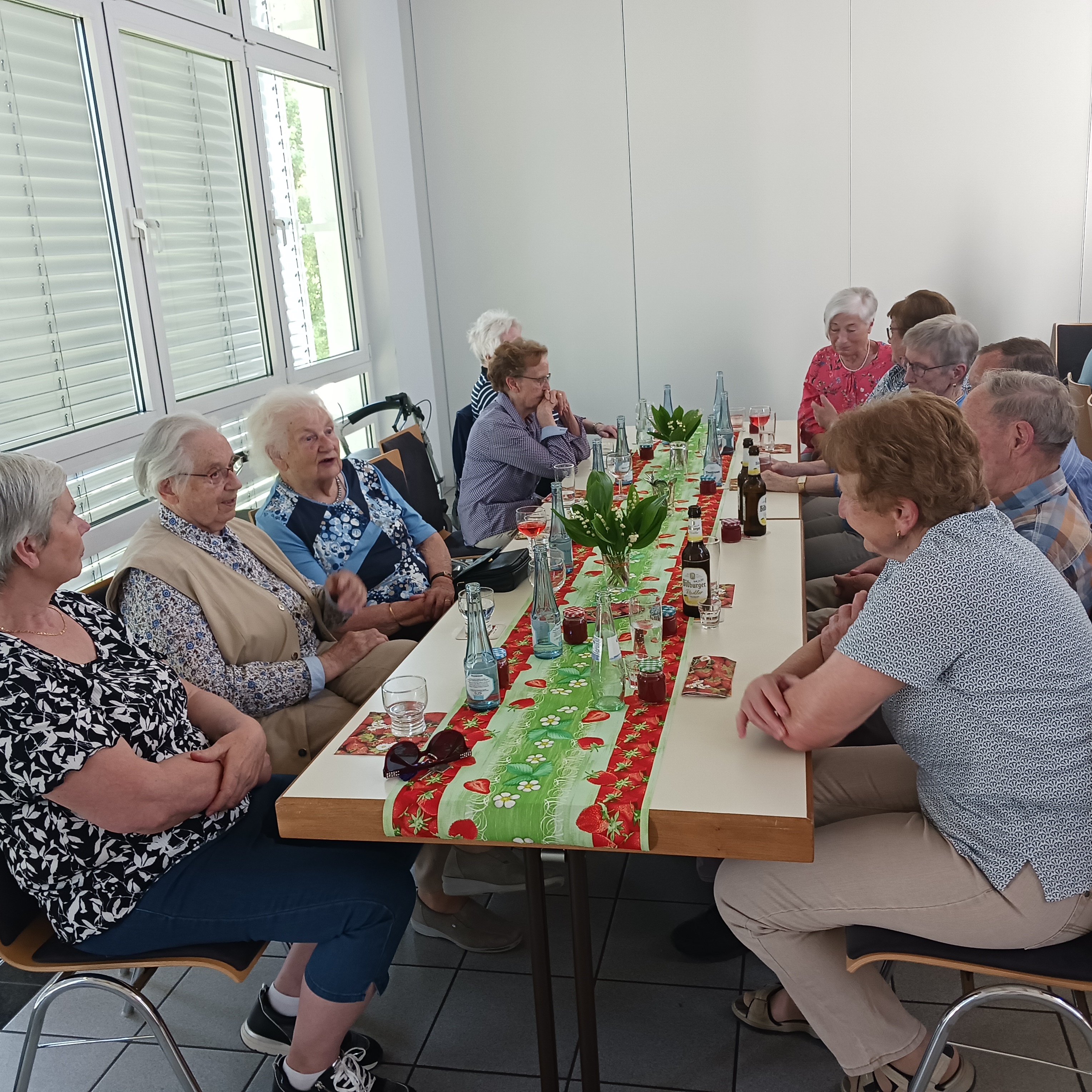 Zum Erdbeerfest hatte die Seniorengruppe aus Salz am 14. Mai eingeladen. Ursula Wörsdörfer konnte 38 Personen begrüßen. Dem Thema entsprechend war alles auf Erdbeeren ausgerichtet. Nach einer schönen Maiandacht mit Pfarrer Jonietz konnten sich alle am Kuchenbüffet bedienen. Bei neun Erdbeerkuchen fiel die Auswahl nicht leicht. Jeder Gast erhielt ein kleines Glas Erdbeermarmelade und auch die Erdbeerbowle durfte natürlich nicht fehlen. Es wurde viel erzählt und gelacht und auch ein Quiz zum Thema Erdbeeren kam gut an. Es war ein wunderschöner Nachmittag.